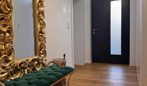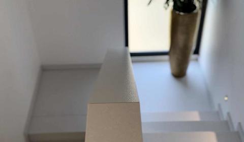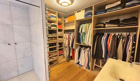 Au rez-de-chaussée: la porte principale avec son grand hall d'entrée/armoire intégrée, une belle cuisine entièrement équipée avec accès à la terrasse/jardin, un spacieux living/salle à manger, un débarras et un WC séparé. Au rez, vous avez également l'entrée du garage et plusieurs emplacements extérieurs.